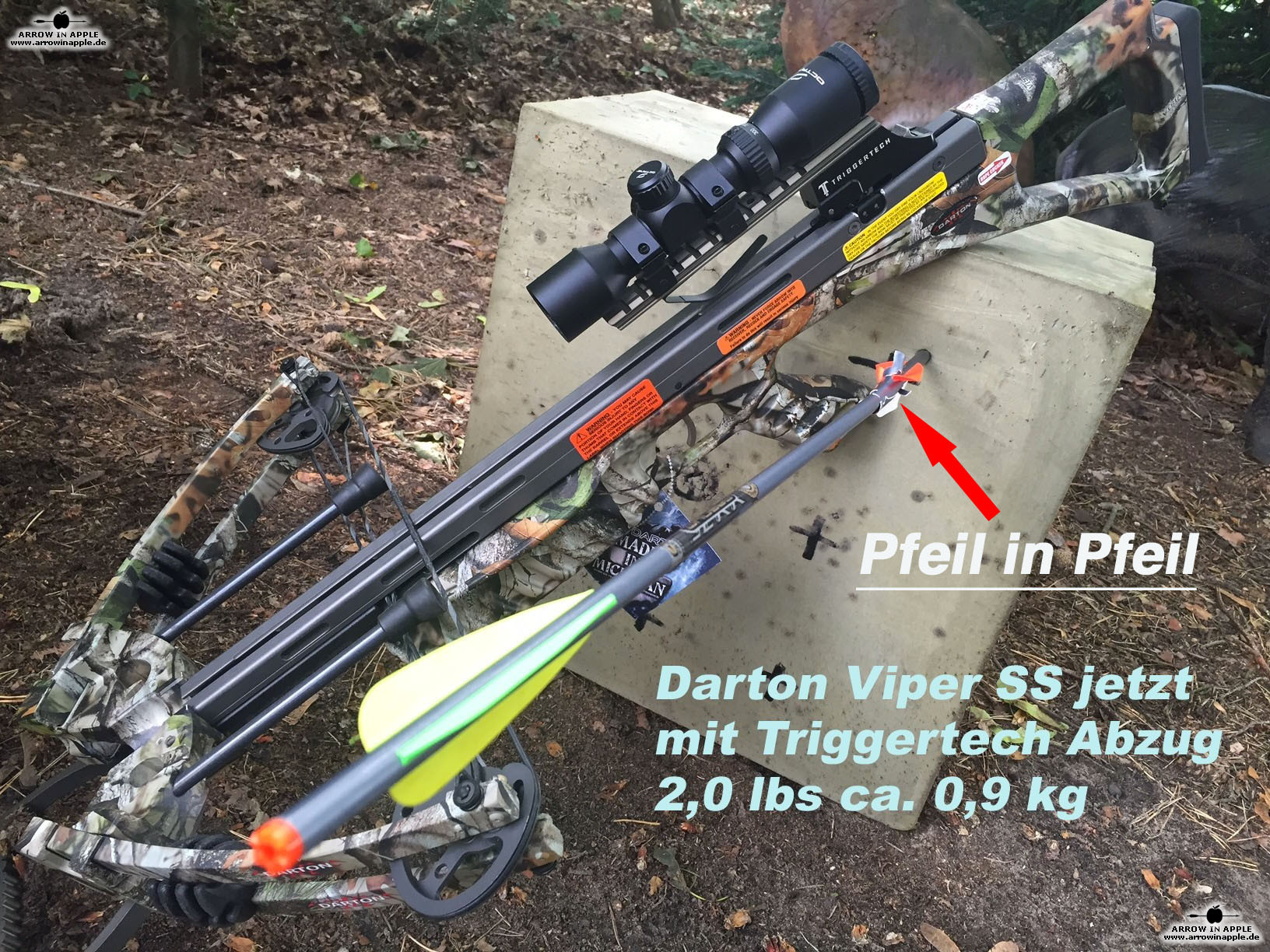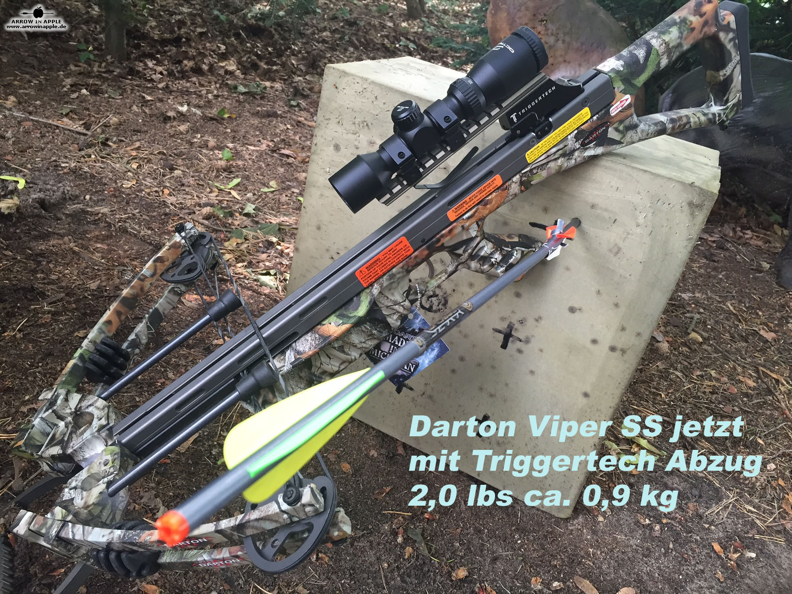 Wir bieten sie hier als Sondermodell mit dem neuen Triggertech Trigger (Abzug) von nur rund 0,9 kg Abzugsgewicht an. Das verändert das Abzugsverhalten spektakulär und erhöht das Treffervermögen für dieses Model nochmal enorm. Siehe auch Fotos der "Robin Hood" Schüsse in der Galerie. Außerdem ist im Triggertech Abzug eine aktive Trockenschusssicherung integriert. Die Viper SS ist mit einem 2-6 x 32 DeadZone Zielfernrohr bis hin zum FRS 101 ausrüst- und bestellbar. Das Zusammenspiel des nach unten öffnenden Schlosses mit einem guten Let Off des Bogens (Sehne liegt durch die Excenterwirkung der Compoundrollen mit wenig Zugkraft im Schloss) erlaubt eine sehr geringe Abzugskraft des Triggers und folglich ein noch ausgezeichneteres Abzugsverhalten.