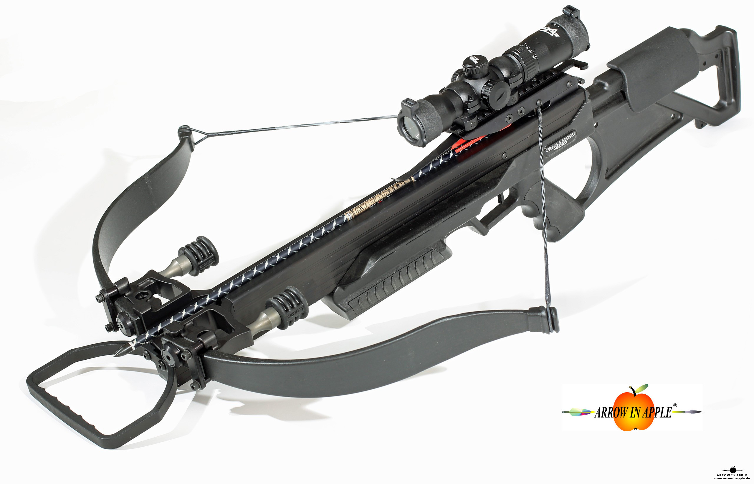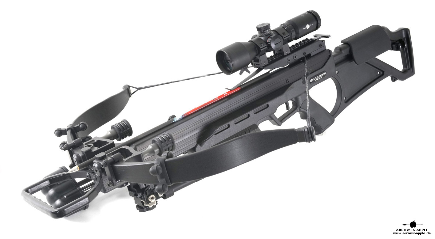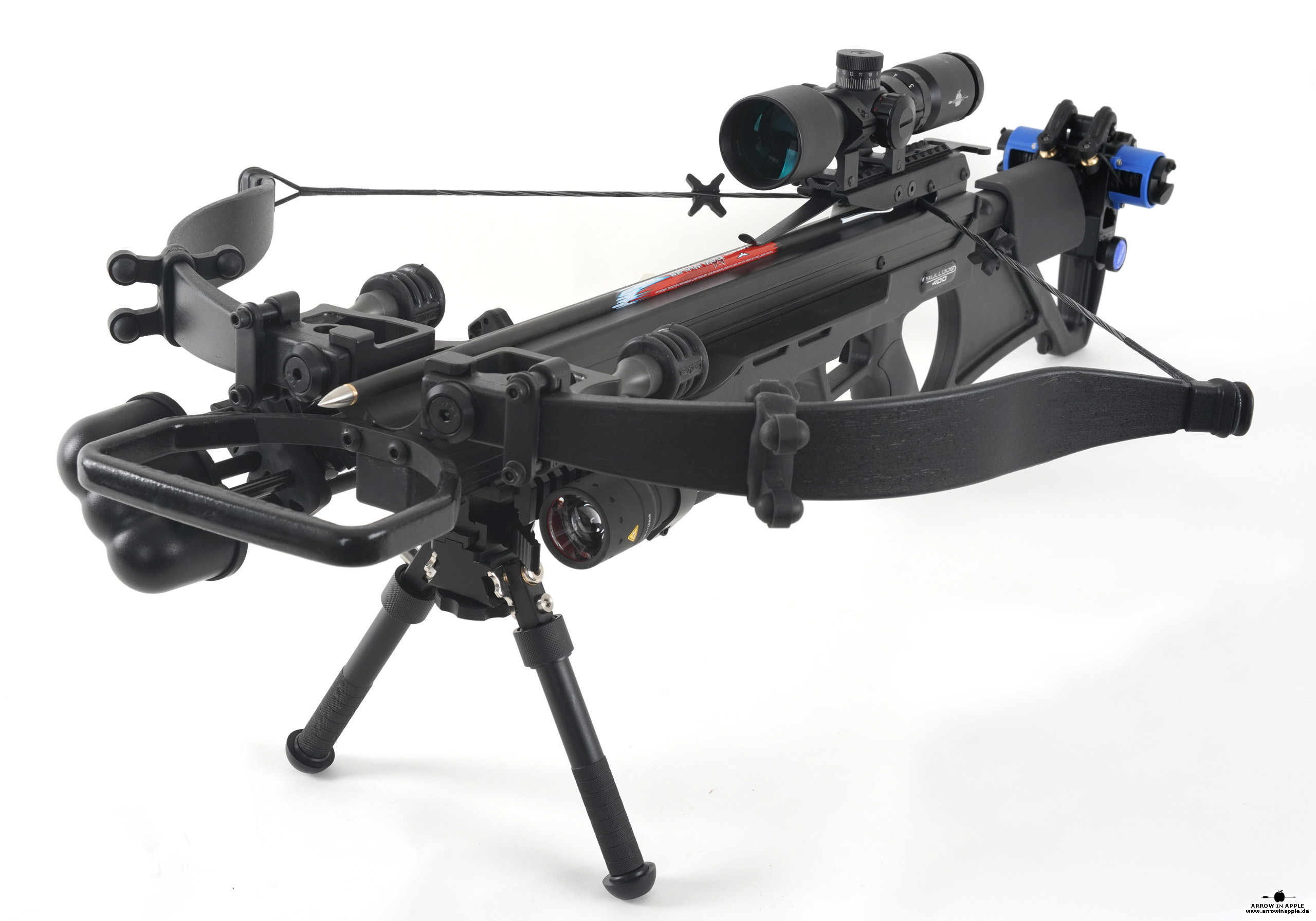 - kein direkter Abzug, Abzugshahn vorverlegt Zur Zeit stärkste serienmäßig hergestellte Recurve Armbrust, Die Armbrust besitzt über der gesamten Oberfläche (außer Abzugseinheit) einen "Camo" Überzug.