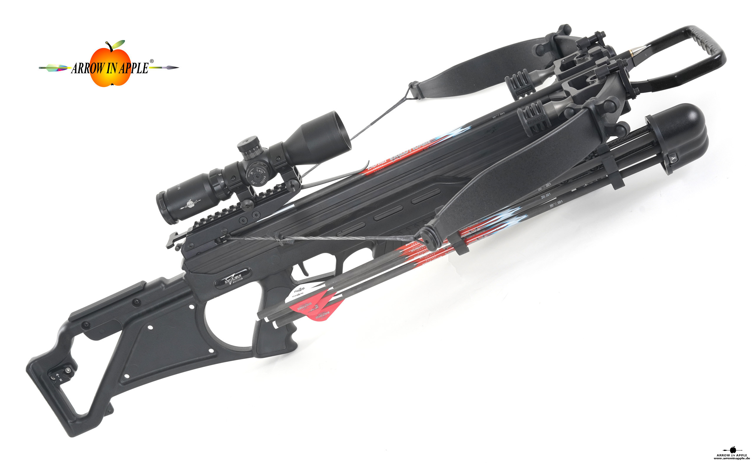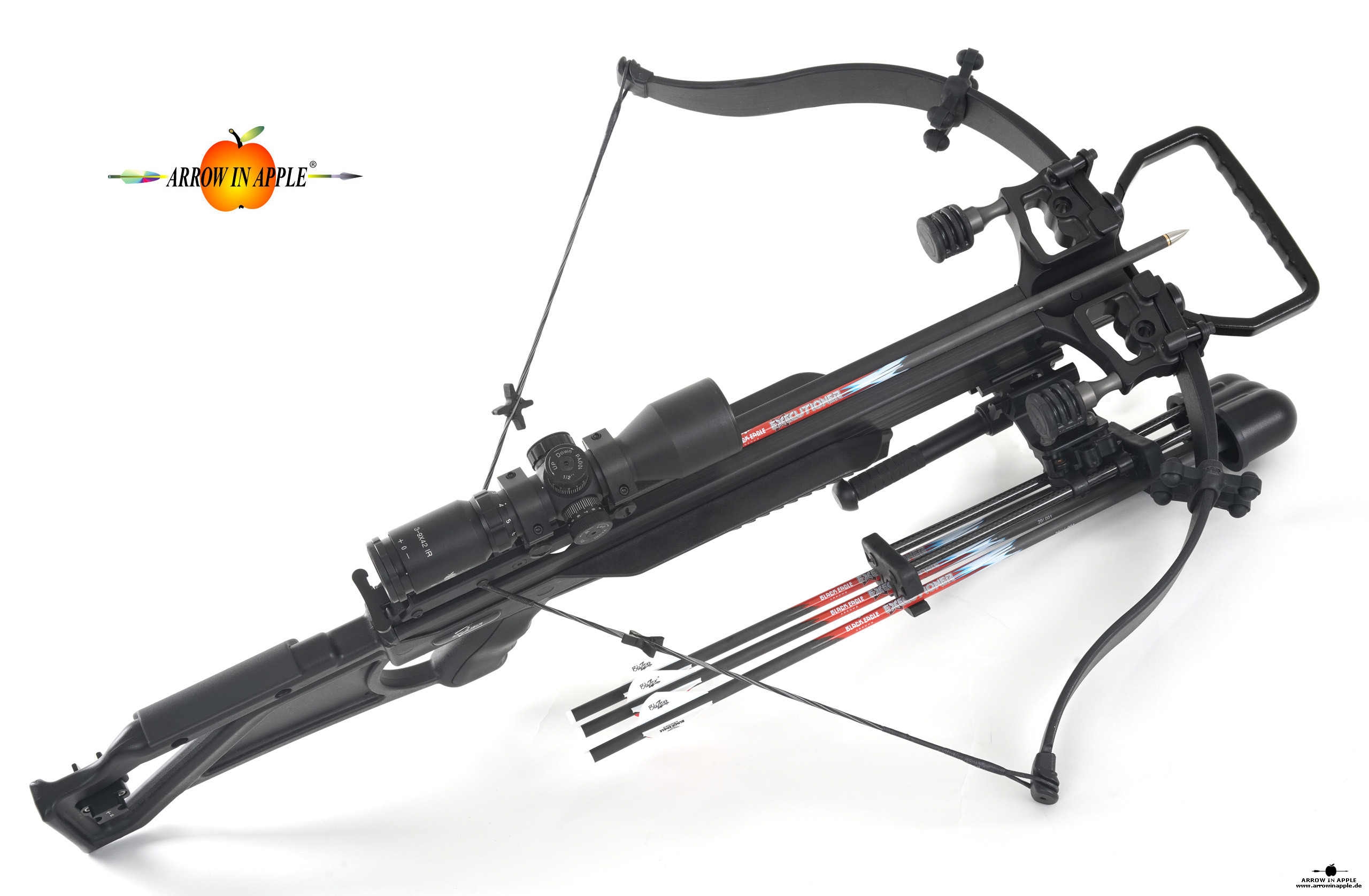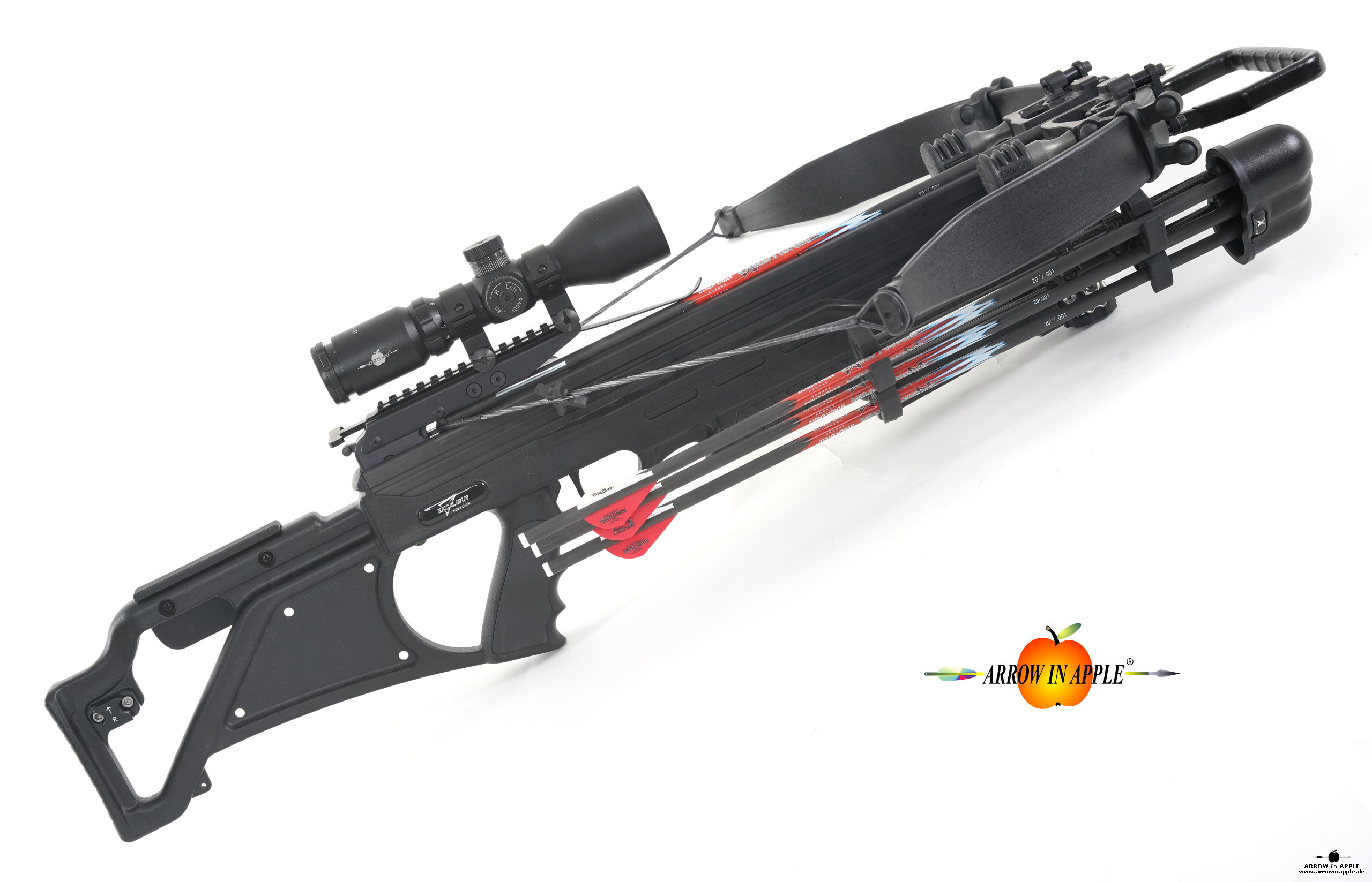 - kein direkter Abzug, Abzugshahn vorverlegt Zur Zeit stärkste serienmäßig hergestellte Recurve Armbrust, Die Armbrust besitzt über der gesamten Oberfläche (außer Abzugseinheit) einen "Camo" Überzug.