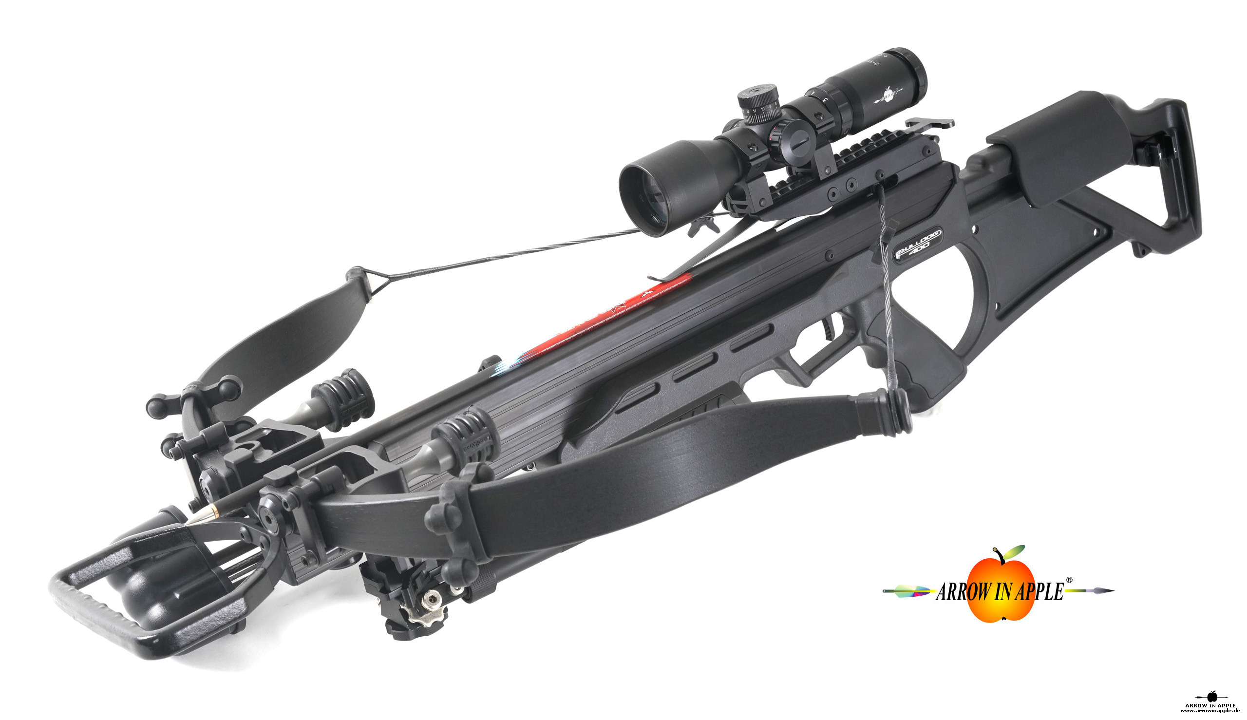 Die stärkste Excalibur in Schwarz Bulldog 400, die man noch realistisch mit der Hand (Spannhilfe) spannen kann, kommt 2020 bei uns mit bereits eingebautem Excalibur ACP Pro Shot Trigger. mit fast 410 fps. Brandneu und extra für uns von Excalibur gebaut.. Die Schiene ist glatt, schwarz eloxiert und damit natürlich auch besser für den Sehnen- und Mittelwicklungsverschleiß. Der Schaft ist stabiler und farbbeständiger. Es ist aber durchaus der Gebrauch eines Charger EXT (Kurbel) möglich, d.h. heißt hier sind beide Spannoptionen verwendbar. Überprüfen Sie es selbst, in allen Paketen gibt es erheblich Preisnachlässe bei den entsprechenden Zubehören.