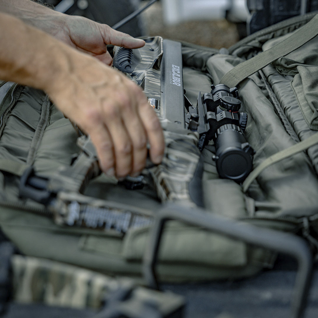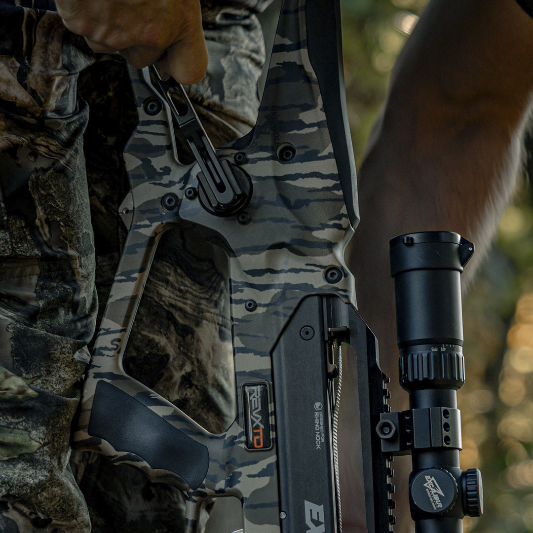 Die RevX TD, eine zerlegbare Armbrust, die alle Eigenschaften von Excalibur beibehält und darüber hinausgeht. Die gleiche bewährte Robustheit, einfache Handhabung und Sicherheit – in einem System, das kompakter verpackt und leichter transportiert werden kann. Die Quick-Loc-Technologie ermöglicht das Zerlegen und Zusammensetzen mit präziserm Formschluss. Ohne Werkzeug und ohne darüber Nachzudenken. Das Klicken bedeutet Sicherheit. Es bedeutet, dass alles fest an Ort und Stelle sitzt, ohne Abweichung zur vorherigen Montage.