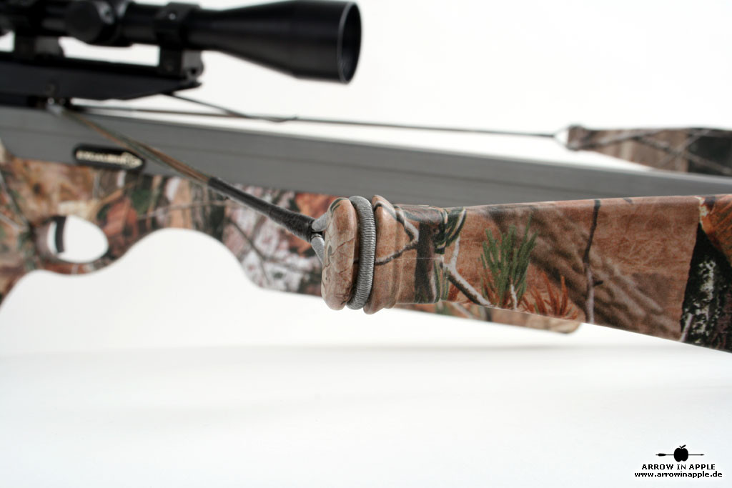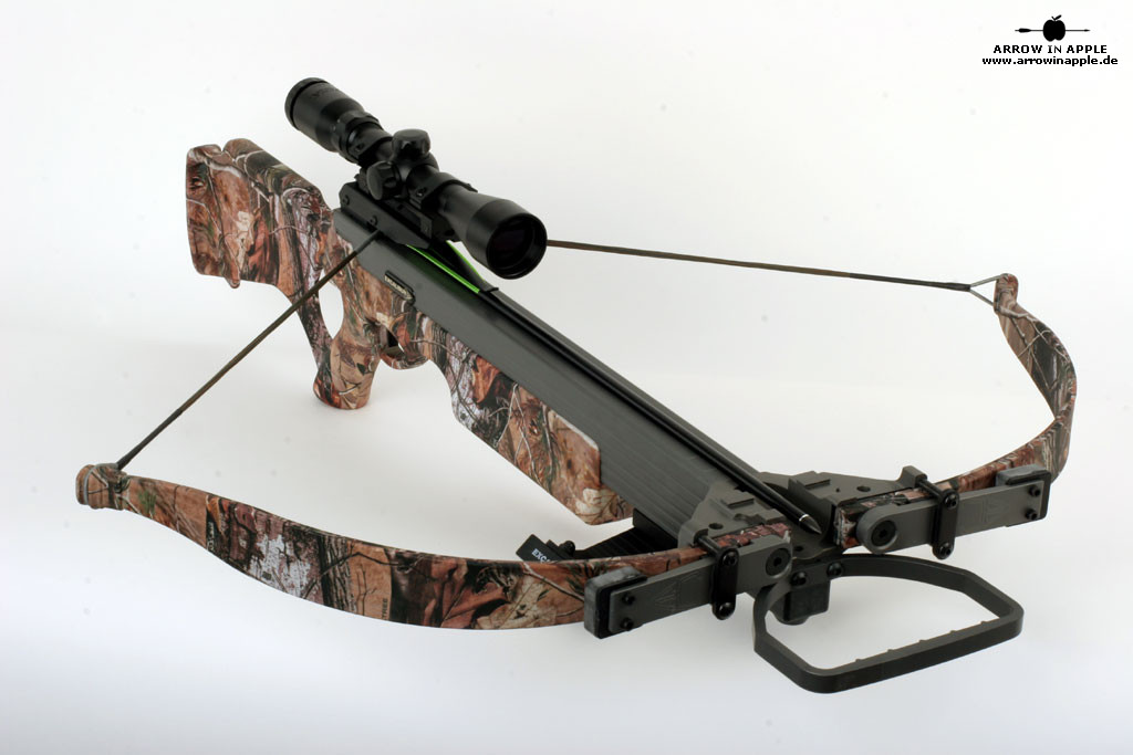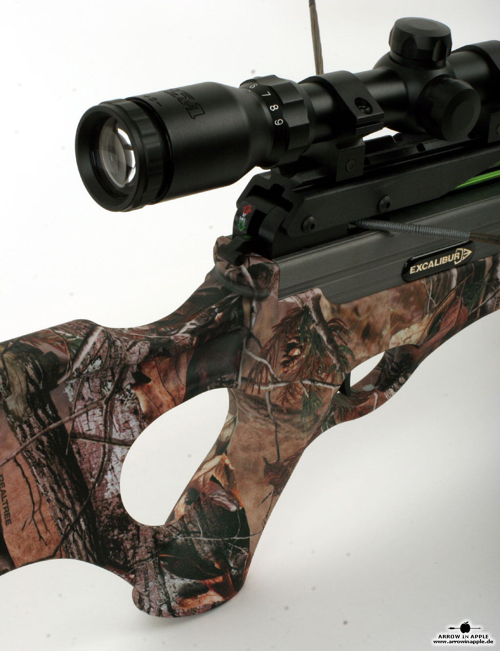 Unter den Recurvearmbrüsten ist die Excalibur wohl die Beste, die im Moment auf dem Weltmarkt angeboten wird. Achtung: Aus Sicherheitsgründen bieten wir nur original Excalibur Zubehör wie, Stringer, t- handle Spannhilfe, Sehnen, Köcher, Zielfernrohrschiene usw. an. Man erkennt es an der Kennzeichnung des Produktes bzw. der Verpackung. Für den Recurve - Armbrust Liebhaber ist diese Armbrust ein Muss. Einfach und unkompliziert sind diese Armbrüste aufgebaut. In der Excalibur Armbrust stecken über 30 Jahre Erfahrung des Herstellers, der in dieser Zeit mit kleinen aber absolut sinnvollen Verbesserungen die Recurve Armbrust an sich perfektionierte. Die wichtigen und für die tadellose Funktion einer Armbrust notwendigen Bauteile wie Pfeilschiene, Zielfernrohrschiene und Sockel, Riser sind nicht aus preiswerten Kunststoff sondern aus Aluminiumlegierungen gezogen bzw. gefräst. Das läßt auch nach häufigem Gebrauch keine Ungenauigkeiten zu. Sie besitzt wie alle hochwertigen High- Tech Armbrüste, als "Markenzeichen", ein Schlosssystem mit einer nach oben öffnenden Schloßklappe. Eine Excalibur Vortex schießt, wie alle von uns angebotenen Armbruste äußerst genau und kann den Minimalpfeil (23,7g) auf 330 fps oder ca. 100 m/s Anfangsgeschwindigkeit beschleunigen. Die Excalibur Vortex ist mit einem speziell entwickeltem Dämpfungs system (Dissipatorbars) ausgerüstet, welches nicht offen liegt, sondern robust und fest integriert zwischen dem Riser (Bogenmittelteil oder Wurfarmblock) und Wurfarmen (Bogenarme) eigebaut wurde. Die Vortex besitzt einen "Daumen Lochschaft" (Thumbhole stock) und ist somit genau das Richtige für Schützen, die diesen Schaft der konservativen Variante vorziehen. Das etwas andere Farbdesign rundet diese Innovation ab. Eine Spannhilfe ist empfehlenswert. Sie erleichtert nicht nur das Aufziehen, sondern sichert ein gleichmäßiges, synchrones Spannen der Wurfarme (des Bogens). Das ist die Voraussetzung für exakte Treffer. Ebenso zählt ein Stringer (wird zum installieren und justieren der Sehne benötigt) zum unbedingt emfohlenen Werkzeug. Für die Verwendung eins Zielfernrohres (u.a. passend AIA 4 x 32 ) wird ebenfalls die Excalibur Zielfernrohrmontage Schiene (sope mount) empfohlen. Die technischen Daten sind identisch der EXOCET 200. |