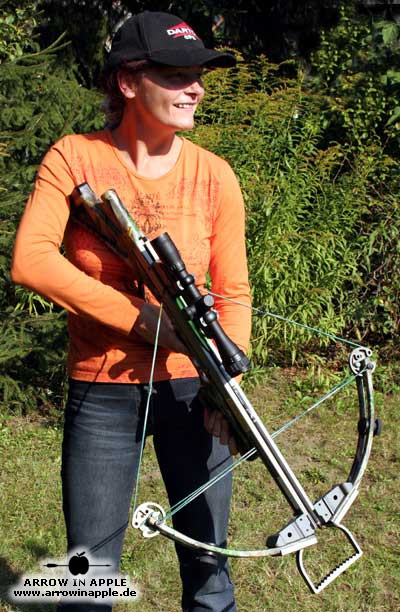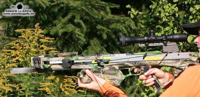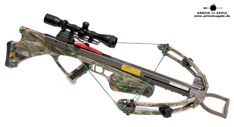 Ein komplettes Dämpfungssystem an den Wurfarmen, der Sehne und dem Pfeilniederhalter macht die Stinger zu einer der leisesten Armbrüste. Die Armbrust Stinger besitzt zwar einen 1,5 Zoll kürzeren Auszug als die Impact, liegt aber nach dieser mit der Pfeilenergie vor allen anderen Armbrüsten auf dem Markt. Es ist immer wieder zu erwähnen, dass die Gründe dafür bei den schweren Pfeilen und der hohen Pfeilgeschwindigkeit zu finden sind. Mit der Stinger wurde eine Pfeilgeschwindigkeit von 330 fps mit einem 480 grain (31,00g) Pfeil gemessen. Das sind rund 101,00 m/s oder 362,10 km/h. |