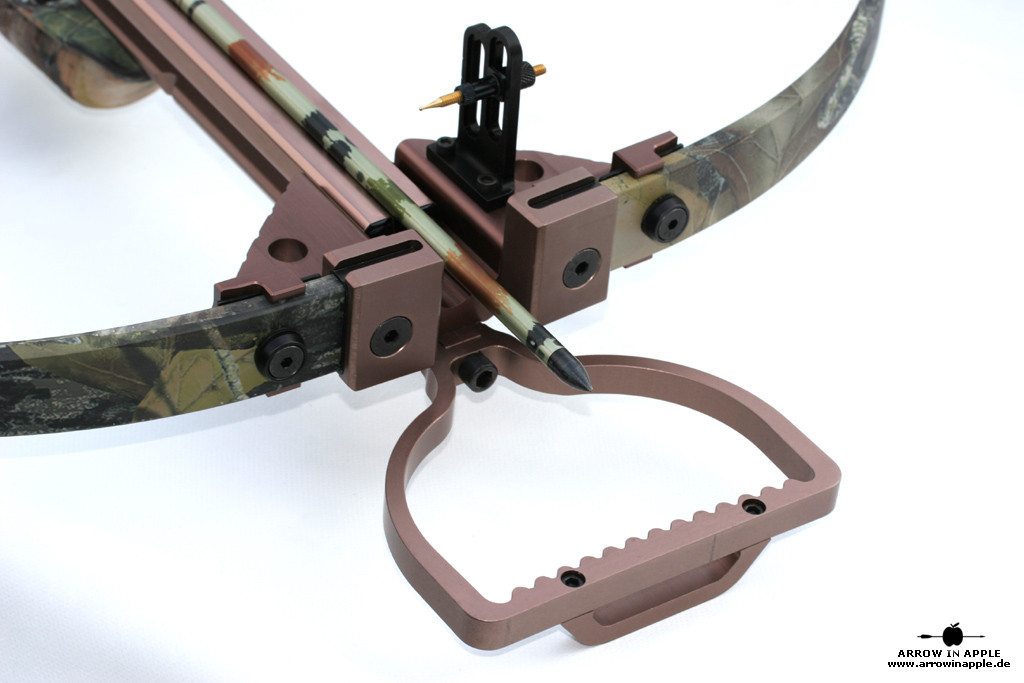 Die 3 fach verstellbare Auszugslängen (180 lbs bei 13,25 Zoll Länge, 125 lbs bei 11,875 Zoll und 90 lbs bei 7,75 Zoll) können schnell und bequem und doch exakt fest eingestellt werden. D.h. für jedes Alter, jede Größe oder für jeden Bedarf ist die Armbrust einstellbar, ja sie erfüllt sogar in der kürzesten Auszugslänge wichtige Kriterien für das Feldarmbrustschiessen.