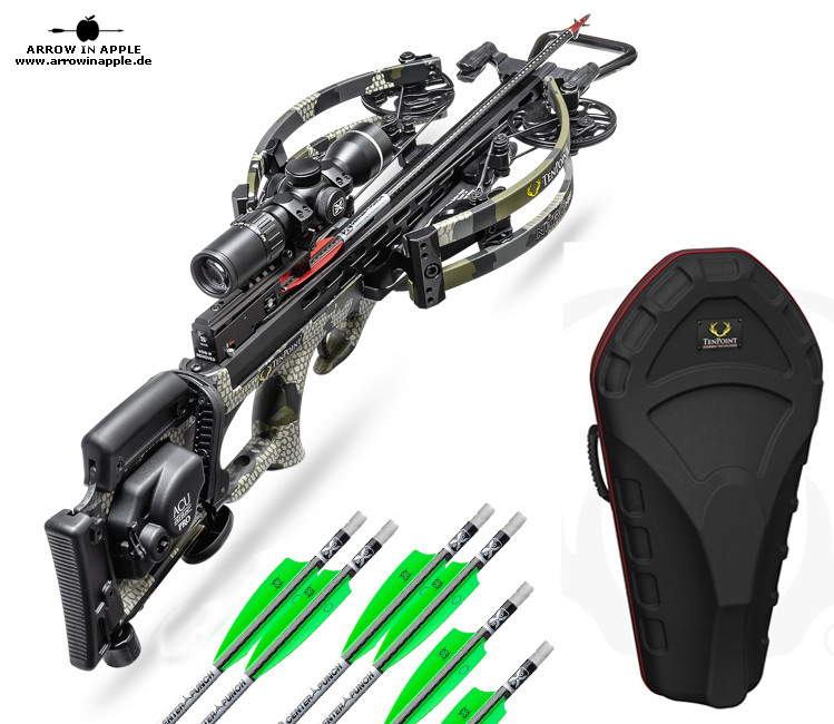 Die Nitro XRT ist das Topmodell von TenPoint in 2019 und kommt mit dem neuen T5 Trigger und einer unglaublichen Geschwindigkeit von 470 fps und das als eine sehr "kleine" Armbrust. Die Achsenbreite beträgt im ungespannten Zustand knappe 32cm und im gespannten Zustand knappe 18cm. Die Länge ist so kompakt konstruiert, dass sie auf einen Bierkasten gestellt vorn und hinten nur etwas darüber hinaus ragt. |