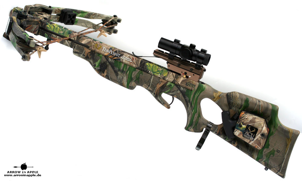Die Armbrust Pro Elite QX-4 ist eines der Top- Modelle der Firma TenPoint Crossbows und kommt im Compoundbereich mit den modernsten, technisch umgesetzten Eigenschaften wie z.B. Trockenschusssicherung, Stützhandsicherung, einbaubare Spannhilfen usw. auf den Markt. Die Pro Elite QX-4 besitzt wie alle hochwertigen High- Tech Armbrüste, als "Markenzeichen", ein Schlosssystem mit einer nach oben öffnenden Schloßklappe und ist zusätzlich mit einer aktiven Trockenschusssicherng ausgerüstet. Das Unternehmen in Nordamerika beschäftigt sich ausschließlich mit der Herstellung von Compoundarmbrüsten und gilt als führend auf dem Sektor. Das Pro Elite QX-4 Modell besitzt ebenfalls alle Eigenschaften und Accessoirs der Elite QX-4, ist aber in limitierter Auflage vollständig mit dem Realtree Hardwoods Green HD Camo belegt worden. Zusätzlich besitzt dieses Paket 12 Carbonpfeile, 1 Tragegurt, einen 3-Pfeilköcher, einen 3-Pfeilköcher Anbauadapter für den Transport am Gürtel, Steddy Eddy -Stützteleskopstab, 6 Broadheads, ein brandneues ProView 3x32 = rot oder grün beleuchtetes Armbrustzielfernrohr mit 5 fach Absehen. Der Preis für das o.g. Pro Elite QX 4 Paket beträgt 1.498,- EUR. Wir bieten alle ... QX-4 Modelle mit der Option einer eingebauten Spannhilfe dem ACU Draw 50 oder dem ACU Draw - Kurbelspannhilfe an (für ein gleichmäßiges und leichtes Spannen des Bogens). Diese Armbrüste sind regelrecht vollgestopft mit technischen Raffinessen und Innovationen. Durch spezielle Dämpfer an den Wurfarmen (Elite Modelle) und im Wurfarmaufnahmeblock (alle Modelle) sind sie leiser, als die älteren Stealth oder Magnum Extreme Serien. Jede Armbrust der QX-4 Serie besticht durch äußerste Schusspräzision, geschuldet nicht zuletzt durch einen der besten Abzüge (Power Touch Trigger) auf diesem Sektor. Mit einer TenPoint Armbrust wurde die Crossbow Hunter unlimited 3D Europameisterschaft 2006 in Österreich gewonnen. Auch die Sicherheit steht ganz groß im Vordergrund. Dafür sorgen gleich 3 eingebaute Sicherungen (automatische Ladesicherung, Trockenschusssicherung, zusätzliche Stützhandsicherung) . Die Verarbeitung ist wohl mit die Beste auf dem Markt. Nicht umsonst wird TenPoint als Mercedes der Armbrusthersteller bezeichnet. Die Pro Elite QX-4 der Firma Ten Point Crossbows ist als Komplettpaket und als Einzelarmbrust zu haben. Bitte fragen Sie nach. |