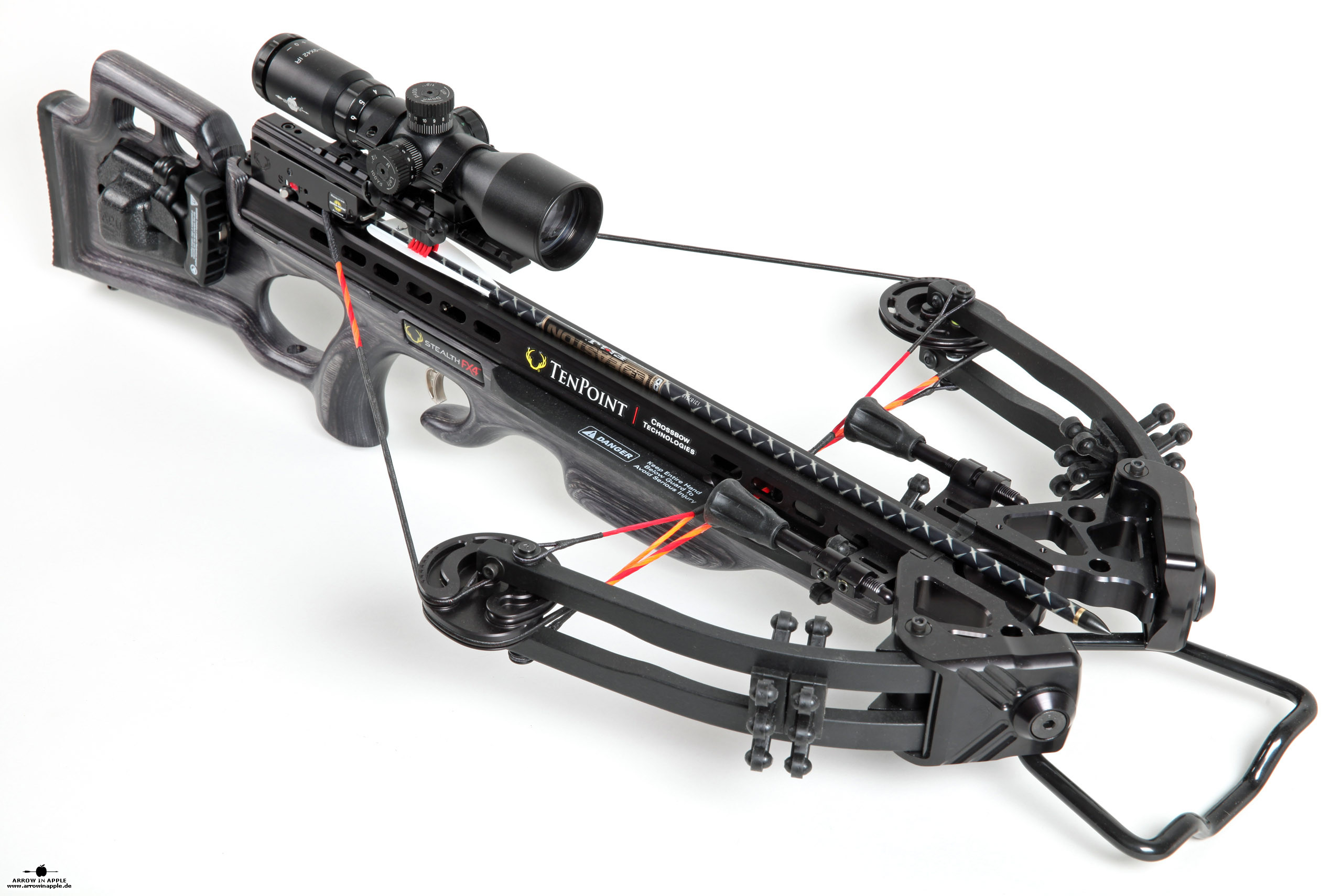 Stealth FX4 XTRA - immer noch die exklusive Top Armbrust der TenPoint Reihe. Die Stealth FX4 XTRA ist ein spezielles Sondermodell der TenPoint Linie und ist wie die Venom XTRA mit einem Schichtholzschaft bzw. zusätzlich mit allem wichtigen Zubehör als "Sorglospaket" versehen. Der technische Unterschied liegt nur in den Pfeilführungschienen. Die der FX4 ist ein gezogenes Profil aus Flugzeug Aluminium und die der Venom aus Carbon. Die technischen Daten sind der des Standartmodells und der der Venom gleich bzw. bestehen theoretisch unwesentliche Unterschiede. Der Holzschaft bringt nicht nur vom Feeling her Begeisterung, sondern auch das Erscheinungsbild ist ein ganz hochwertiges. Das ganze gepaart mit den FX4 Leistungsdaten, der Genauigkeit und der Verarbeitung dieser kompakten aber auch robusteren TenPoint ergibt eine perfekte Armbrust. |