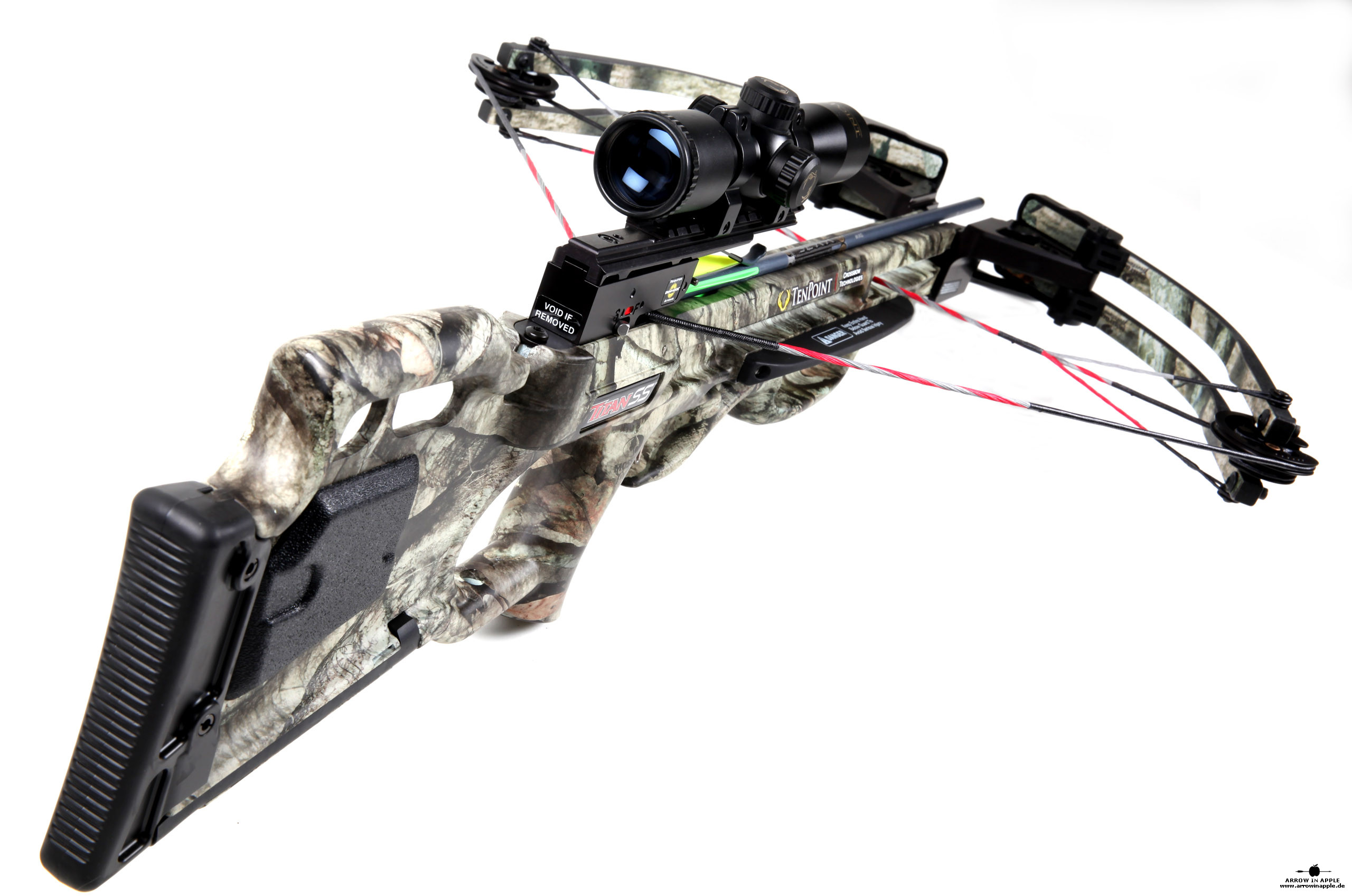 Die Titan SS ist der Nachfolger des mit beliebtesten TenPoint Modell, der Titan Extreme. 2016 wird sie bei uns noch kompakter (kürzer) mit einer verstellbaren Schulterstütze angeboten. Ausgerüstet ist sie serienmäßig mit einem 3 x 32 Pro View 2 Zielfernrohr, welches für die Hauptentfernungen von 0-20, 30, 40 und 50 yards in unterschiedlicher Intensität, rot oder grün beleuchtbar ist. Mit einem AIA FRS ZF sind natürlich auch entsprechend weit aus größere Entfernungen möglich. Der beim Laden sich automatisch sichernde Abzug, ist wie bei allen TenPoint perfekt und ebenfalls mit einer aktiven Trockenschusssicherung ausgerüstet. Köcher und 3 Pfeile sind inklusiv. Mit einer Pfeilgeschwindigkeit von 320 fps (optimales Pfeilgewicht) ist sie nicht nur jedem 3 D Turnier gewachsen, sondern sie zeichnet sich auch durch ein gutmütiges Pfeilabgabeverhalten aus. D.h. Anfänger haben hier das optimale Produkt. |