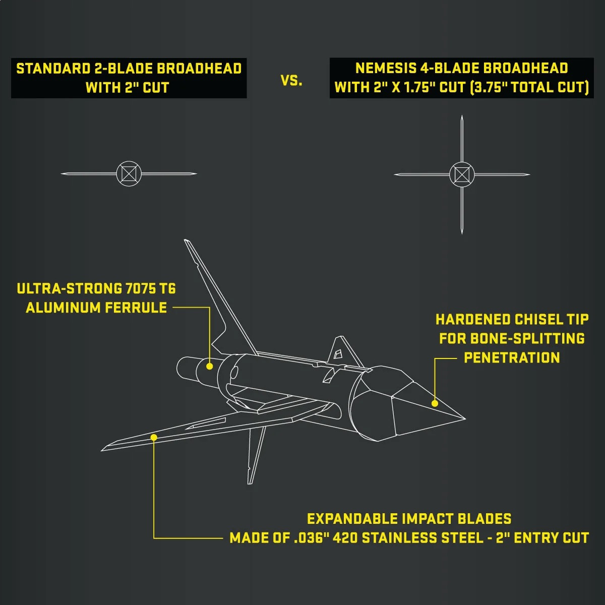 Jagdspitze von TenPoint mit vier ausklappbare Klingen. Eigenschaften und Vorteile